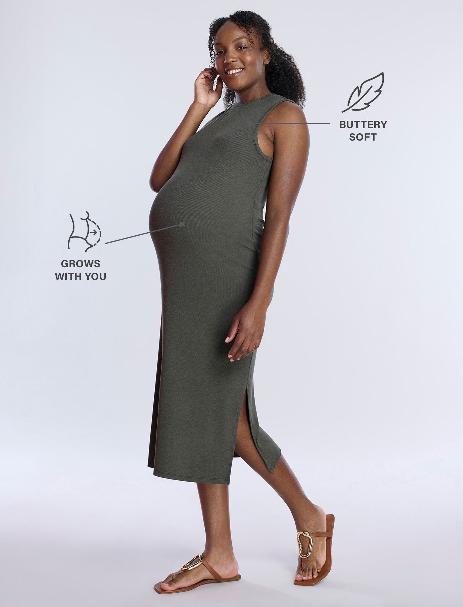Step into comfort and style with our Rib Knit Midi Dress! Made from soft micro rib fabric that grows with you, this sleeveless dress features a chic side slit and is designed to flatter your bump. Whether you’re relaxing or out and about, it’s your go-to for maternity fashion that keeps you looking and feeling fabulous!