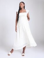 Be the first to review “Sleeveless Ruffle Shoulder Smocked Dress” Cancel reply